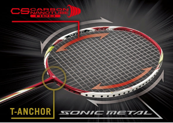 SONIC METAL is an exceptionally strong, lightweight and flexible new titanium alloy which YONEX positions at the top of the frame. This has two advantages. Firstly, it gives you a higher repulsion power, especially in attack. Secondly, it creates a clear strong sound when the shuttlecock is hit.
