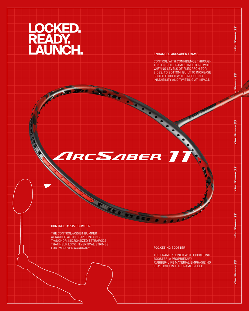 The acclaimed ARCSABER series designed for control is reimagined with emphasized shuttle pocketing for a controlled offense and one-of-a kind feel at impact. Taking control of the court can come in all different forms. For the ARCSABER, that comes from the extra few milliseconds of shuttle contact time allowing assertive shot-making. Combine that with the stability of the enhanced ARCSABER frame, you gain the confidence to command the court.