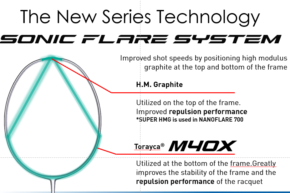 Engineered to improve swing speed and maneuverability, the NANOFLARE is the only head-light racquet proven to provide unrivaled power and increased shuttle acceleration.